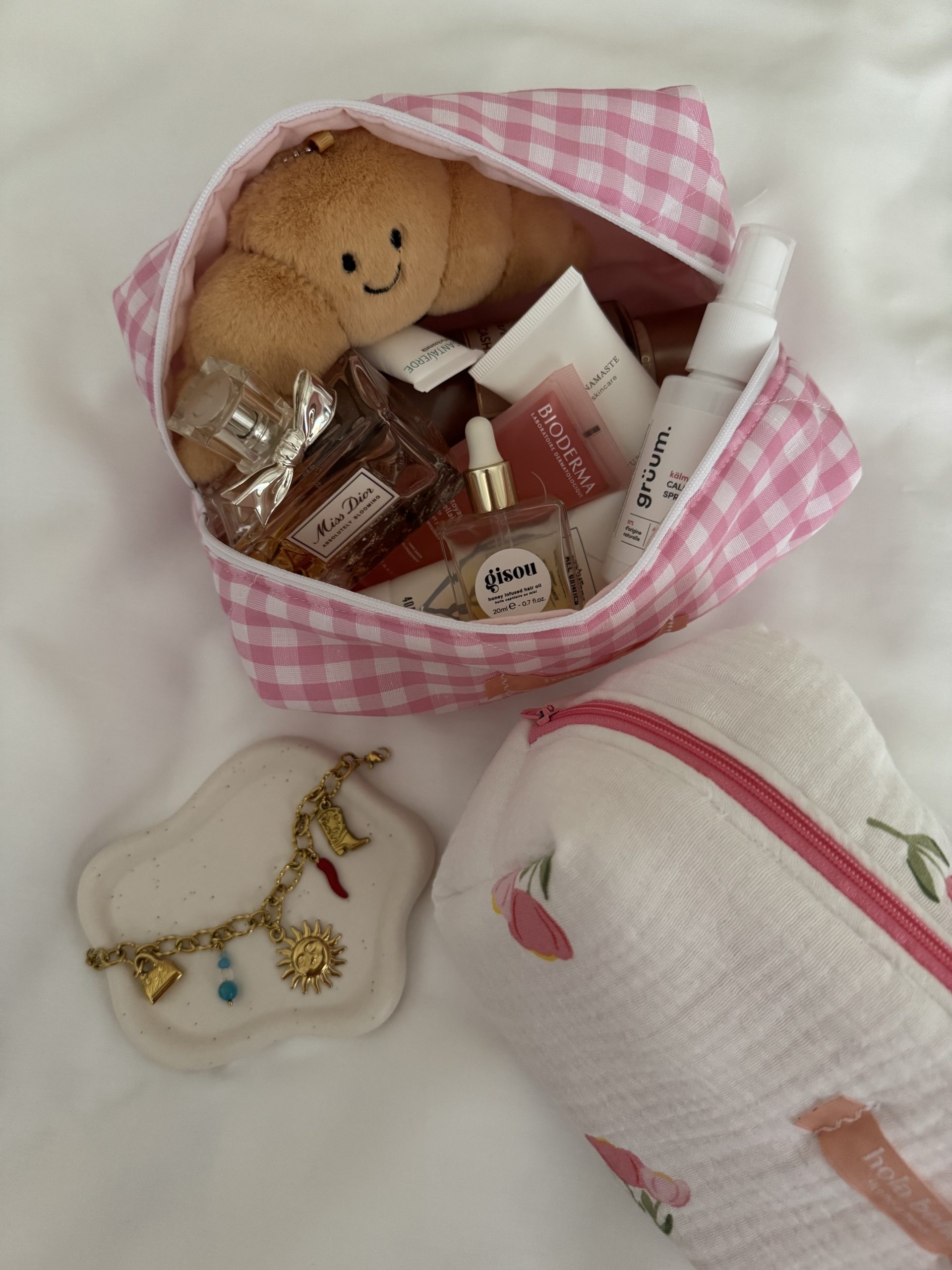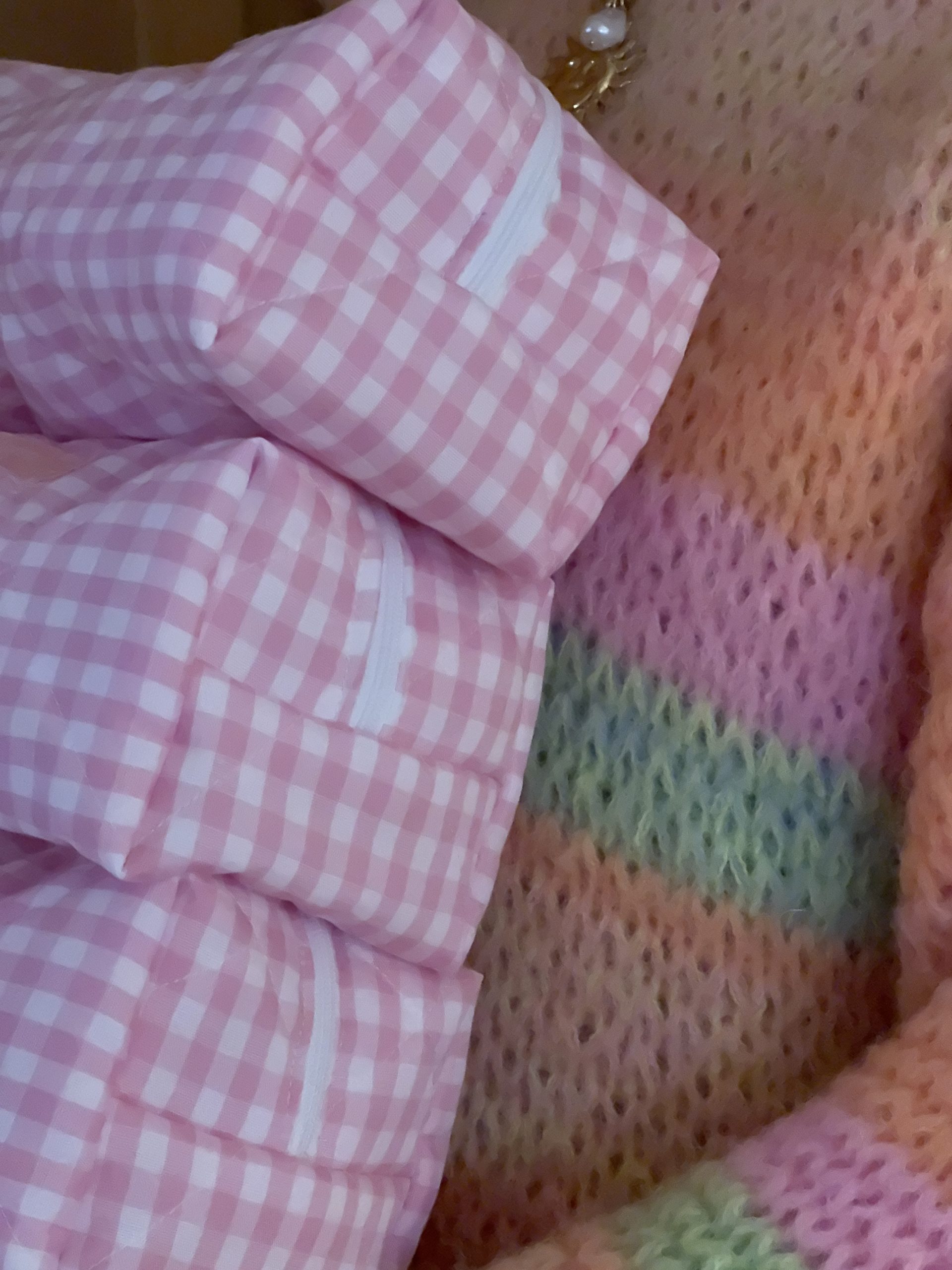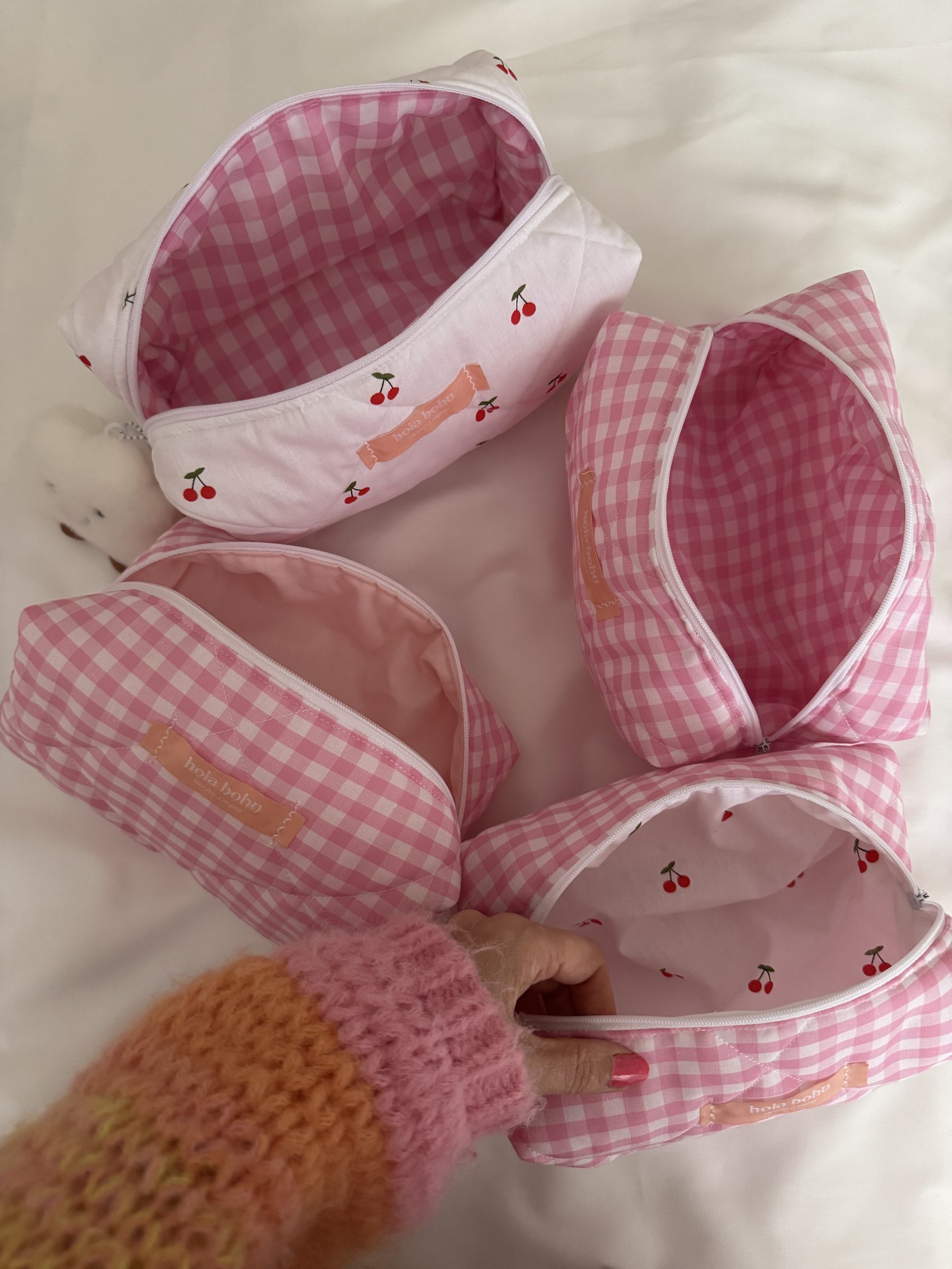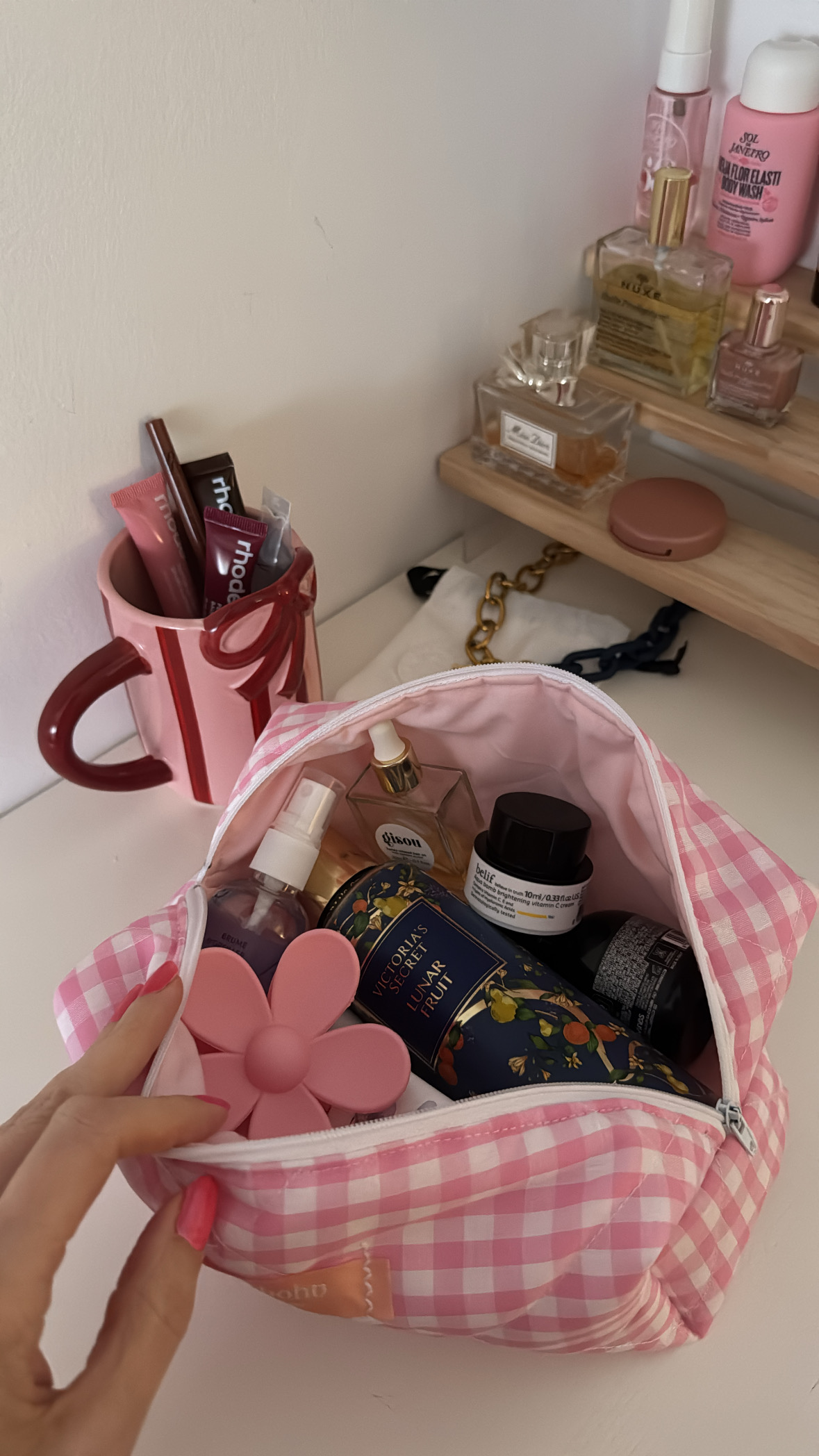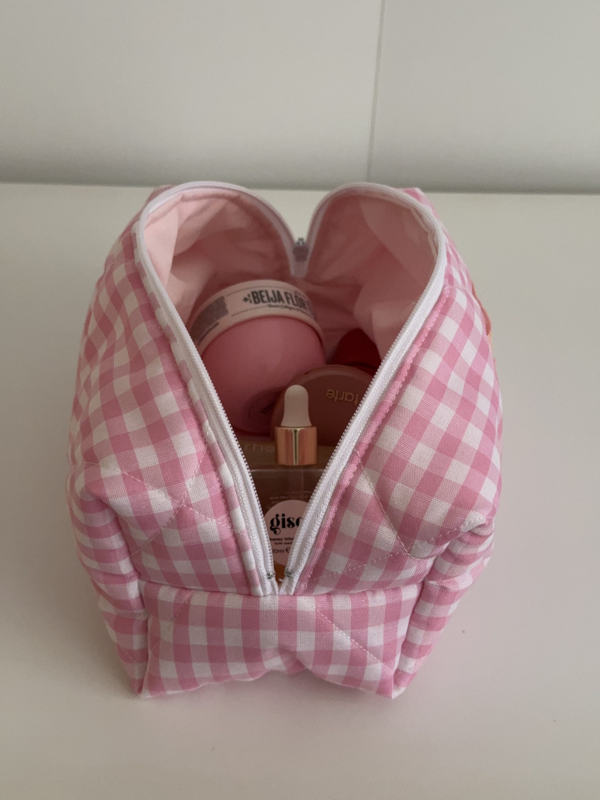 Beauty Bag de cuadro vichy color rosa y interior color rosa